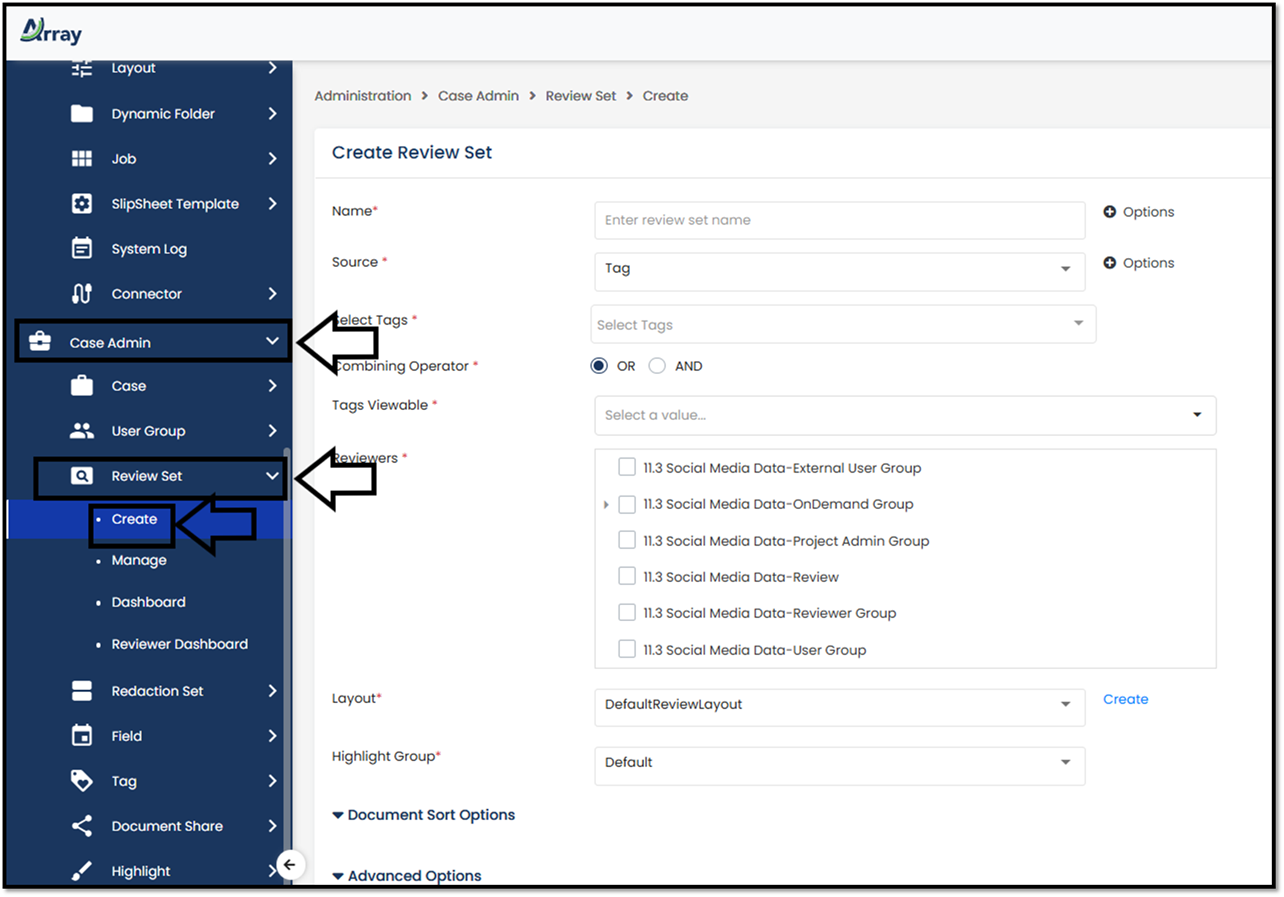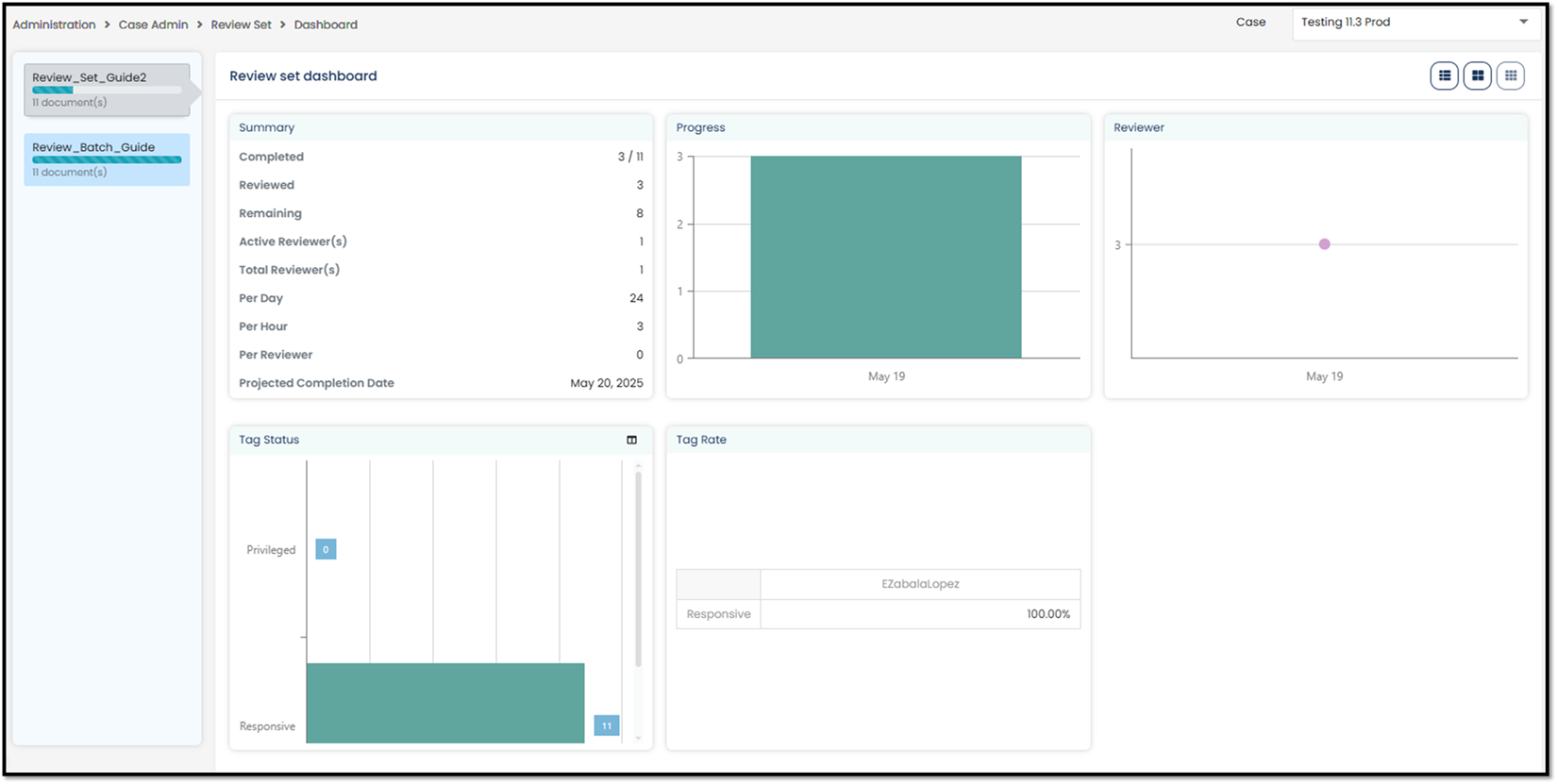 Review Sets, as well as view the Review Set Dashboard, which gives detailed