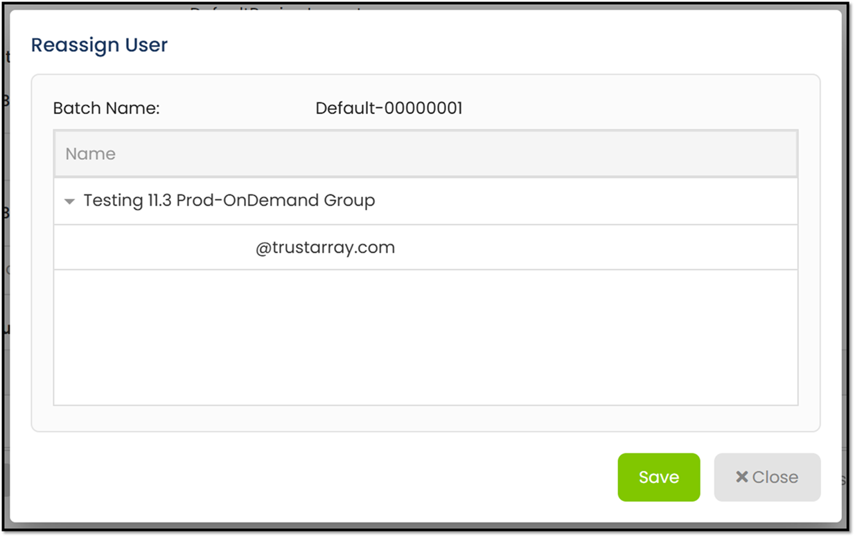 the pop-up will provide the Batch Name and user list. Select the name and click