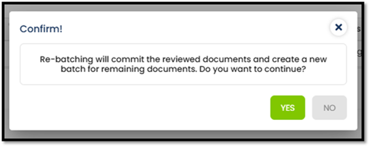 the pop-up below. It will maintain the “marked” documents in the current batch
